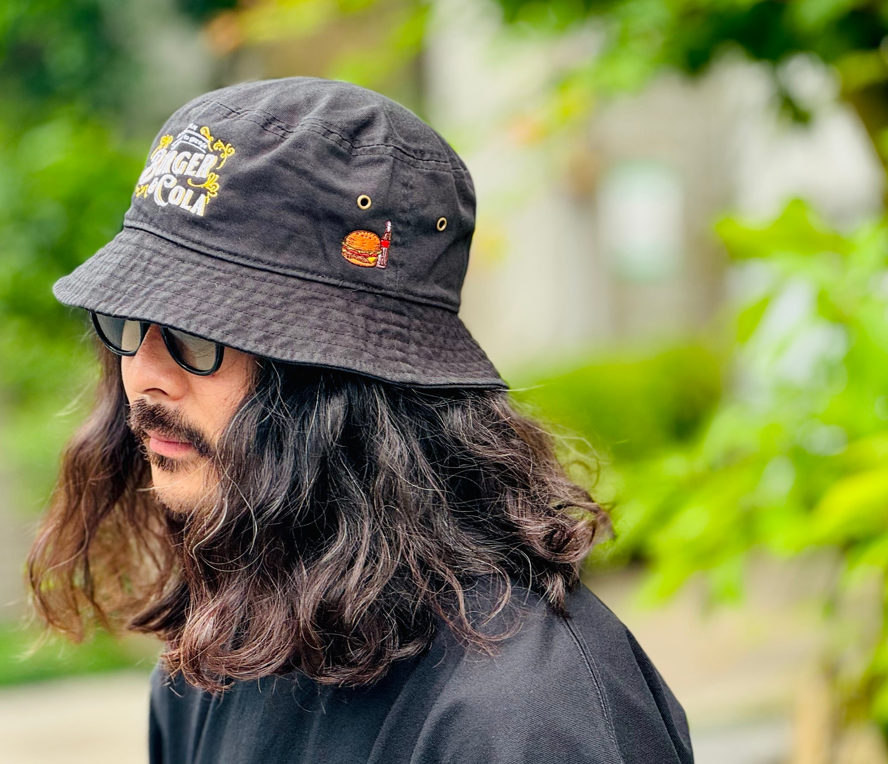 サイドにはハンバーガーとコーラ刺繍を